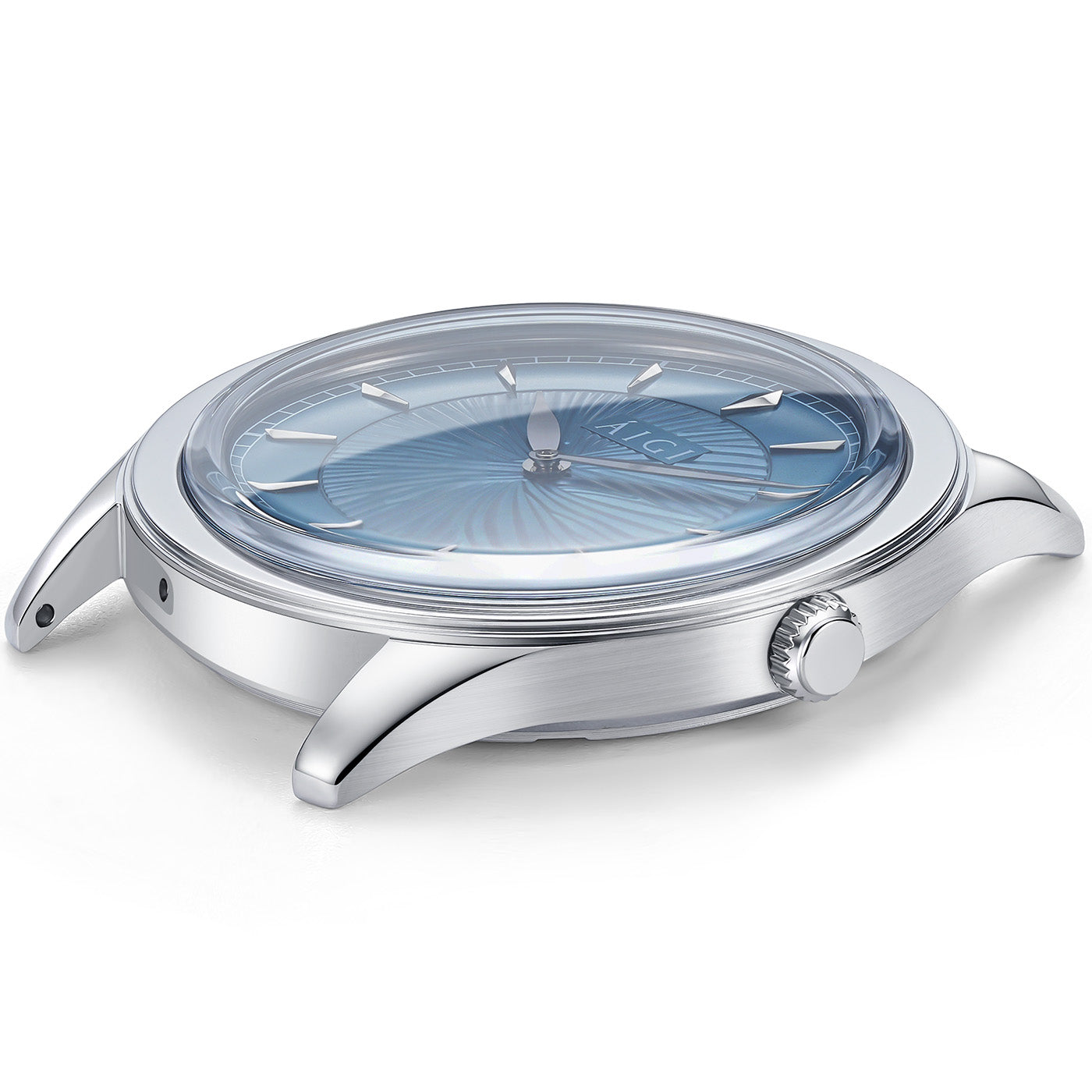 Mønsteret på skiven minner om de vakre solstrålene fra midnattssolen når den lyser sterkest midt på dagen. Reimen er laget av førsteklasses italiensk skinn, som gir en luksuriøs følelse og en behagelig bæreopplevelse. Den har også en praktisk quick release-funksjon for enkel reimbytting uten verktøy.