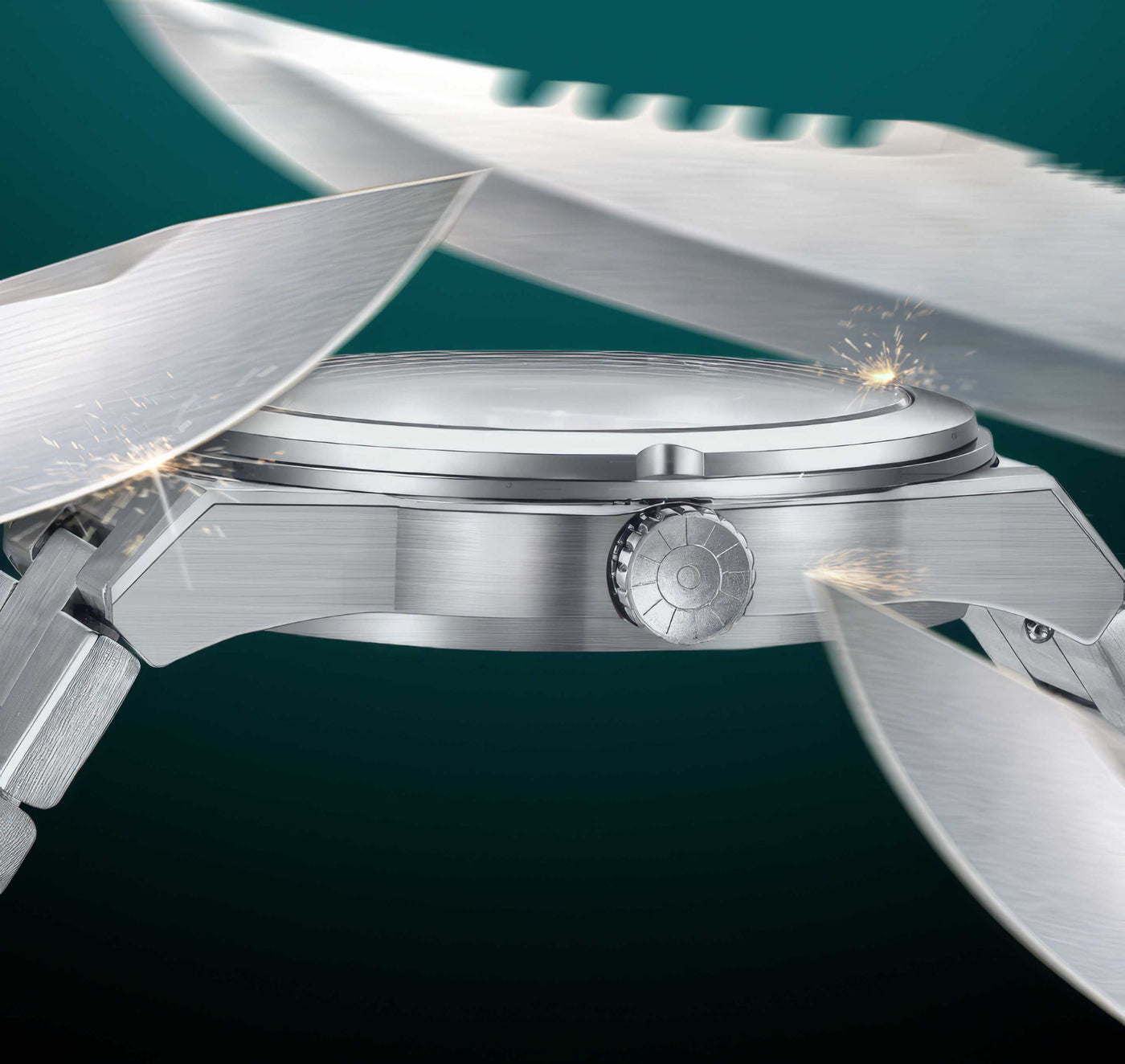 Kassen og lenken gjennomgår en avansert herdeprosess som gir en betydelig forbedret ripebestandighet (1.200 HV), noe som gjør materialet flere ganger hardere enn vanlig 316L-stål, som typisk har en hardhet på rundt 190-200 HV.